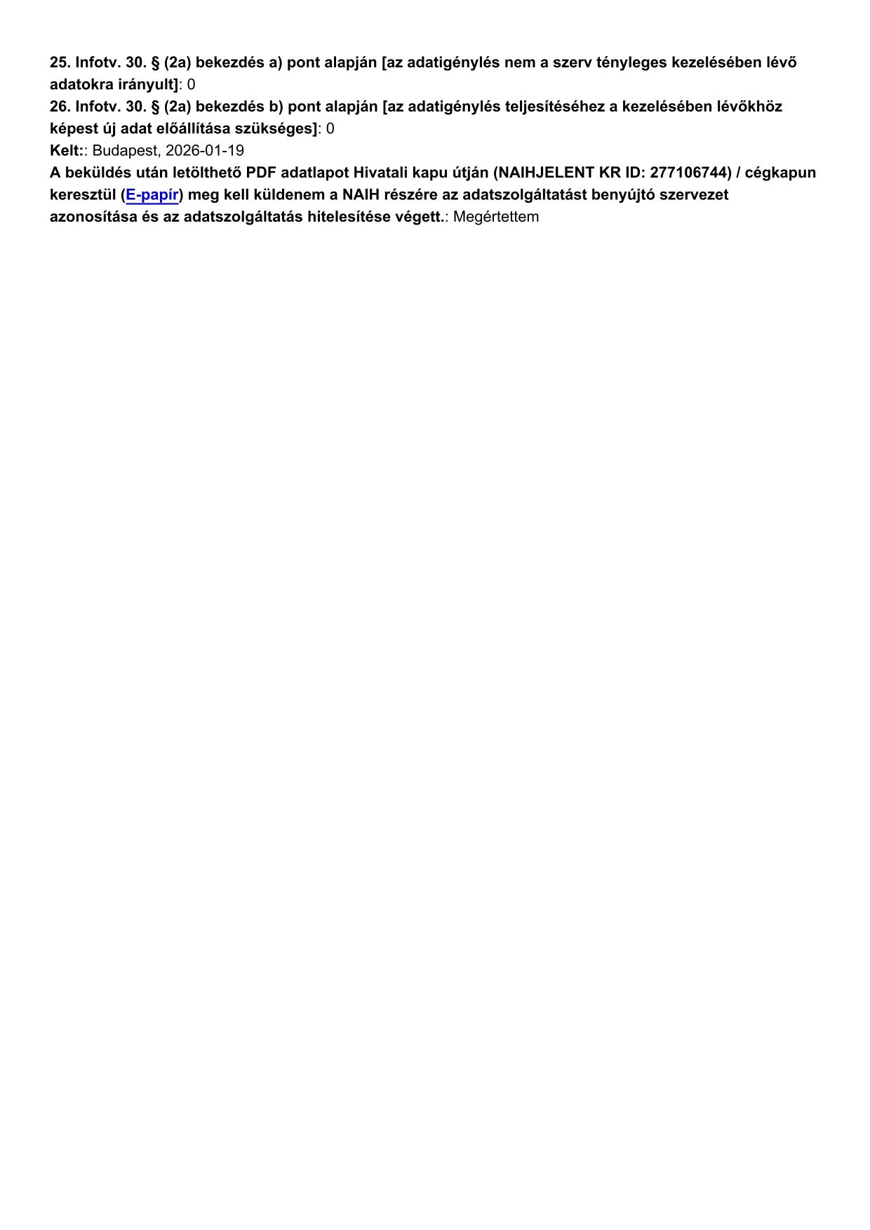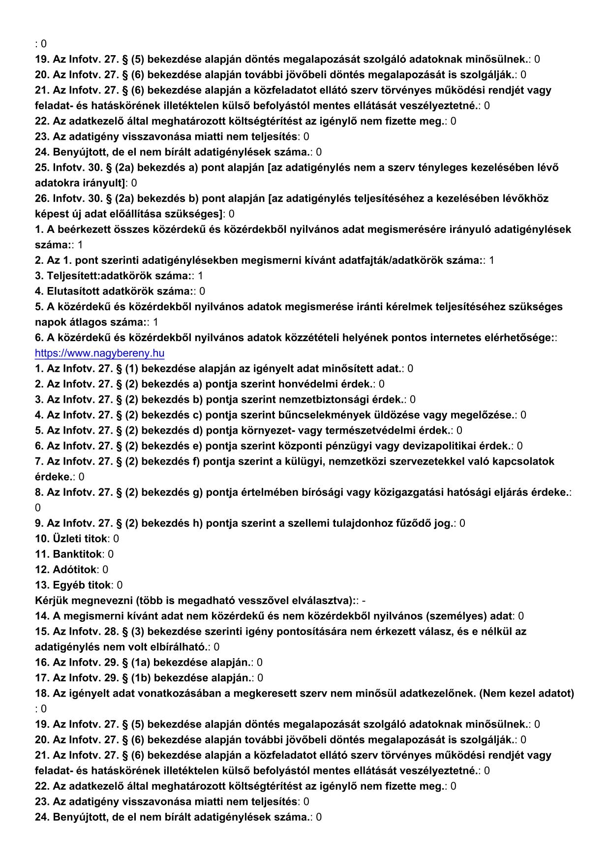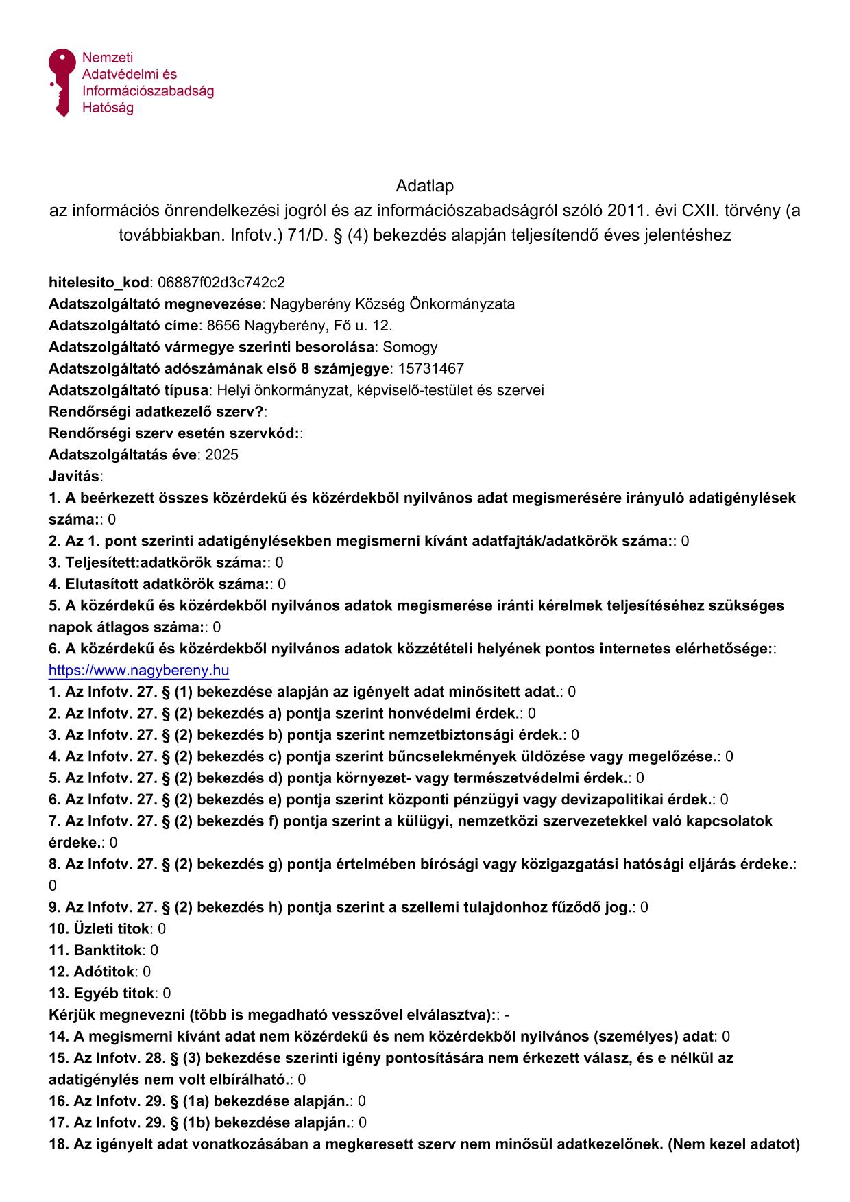Éves adatszolgáltatás a közérdekű adatigénylésekről
